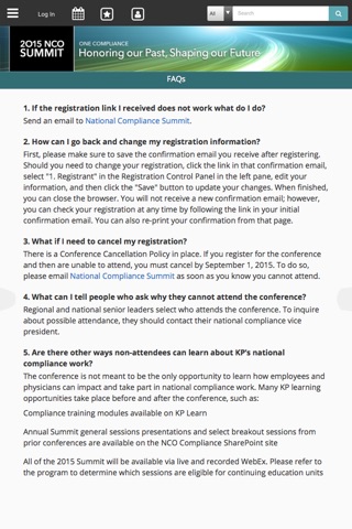 The National Compliance Summit will be held on October 6-8th, 2015 in San Diego, California. Login to view Sessions and Papers saved as favorites. View schedules, locations, floor plans, and people. Attendees will now be able to facilitate their experience at the meeting using the mobile app.