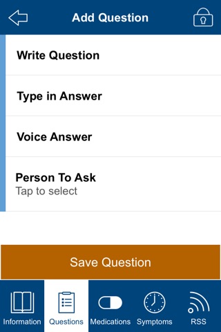 • Questions: Track questions to ask your health care team and record their answers via written notes or audio recording.