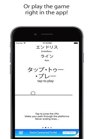 Endoresu is a collection of arcade style endless runners (Rain, Ōbā, Tori, Gravity, and Spikes). Playable in the app or right on the Today screen! Just slide down and add whichever game you would like to play. Simple tap controls and all games are simple, clean and endless...