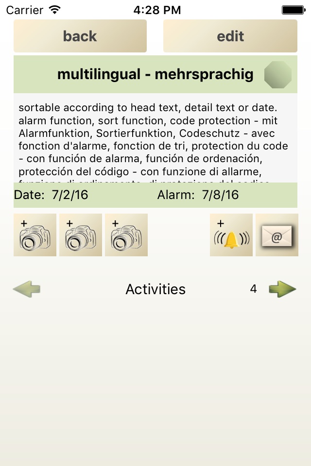 An exclusive easy-to-use notebook with alarm function, sort function, code protection and changeable font size.