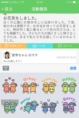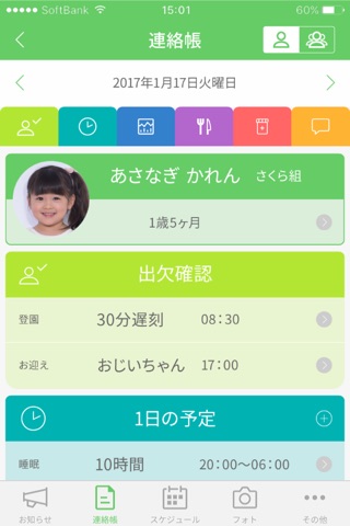 登録することはもちろん、その日のおやつ、昼食などを撮影して家庭と共有することができます。