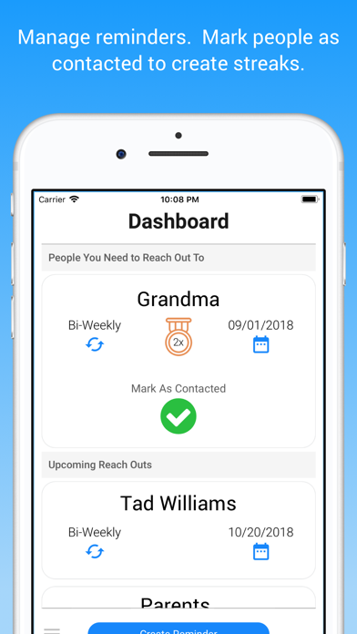 In addition to reminders, you can also create streaks when you reach out to people within a week of receiving your reminder.