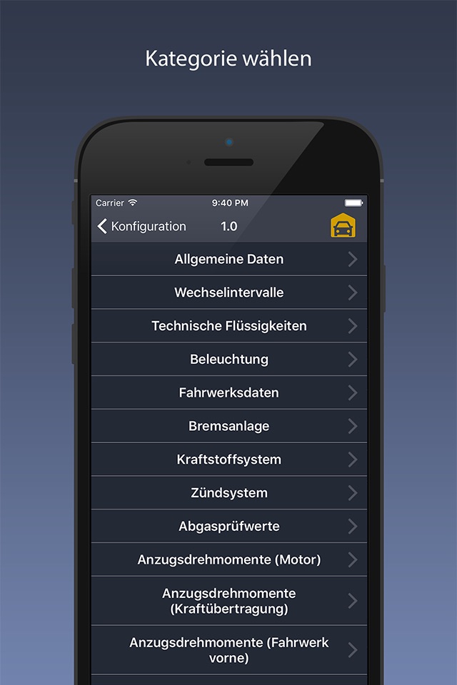 Die Anwendung enthält technische Information, die Ihnen bei der Reparatur und Wartung Ihres Autos hilft.