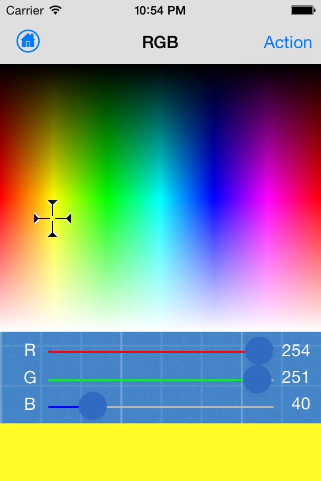 RGB and HEX codes provided a perfect match to the color touched or framed. The RAL (used mainly in paints and coatings) and the name of the color are the result of an approximation algorithm. This is necessary because the application works on a range of 16 million colors, and colors have names that are few hundreds. Therefore, a canary yellow can cover many shades of yellow. Notwithstanding it is possible to compare within the application touching yellow with TRUE canary yellow.