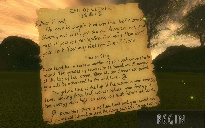 Zen Of Clover is meant to be a relaxing experience, not a "game" really... It is more like an interactive screensaver.